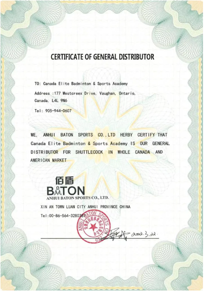177 WEST, WESTCREEK DR. Woodbridge, Ontario L4L 9N6 Canada Tel: 905-944-0607 Email: info@batonsports.ca Website: www.batonsports.ca